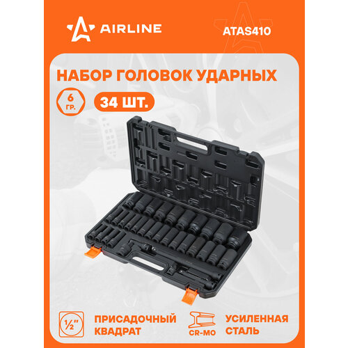 Набор головок ударных 1/2" 34пр. (8-36мм) пласт. кейс ATAS410 AIRLINE