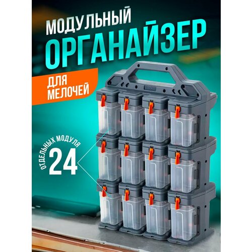 Органайзер для мелочей BLOCKER Expert модульный, 24 модуля 31х15,4х43,5 см, (серо-свинцовый/оранжевый) 3951