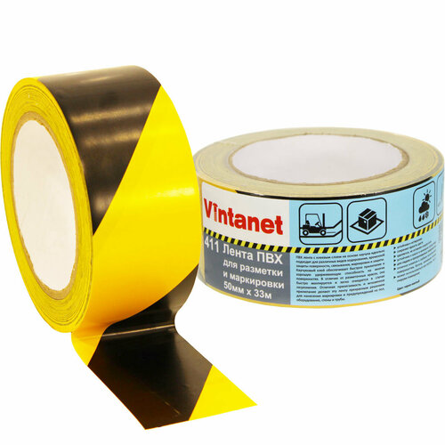 Лента односторонняя ПВХ для разметки 411 Vintanet черно-желтая, 50мм х 33м