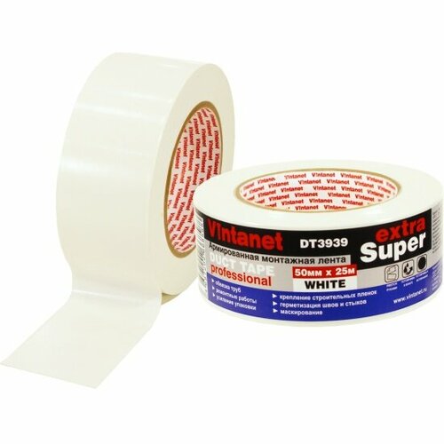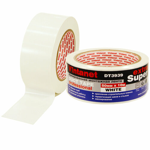 Лента монтажная армированная DT3939 экстра супер Vintanet, белая, 50 мм х 10 м