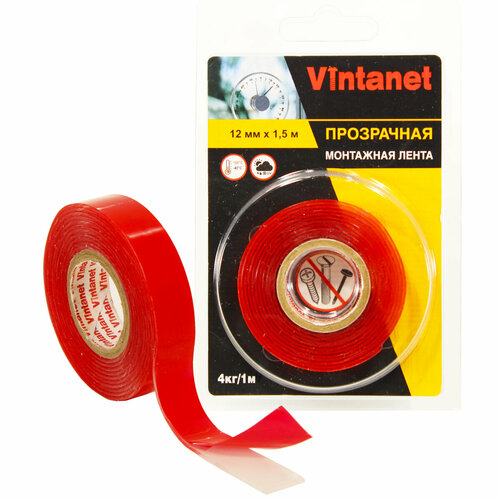 Лента клейкая монтажная двусторонняя VN135 Vintanet, прозрачная, 12 мм х 1,5 м
