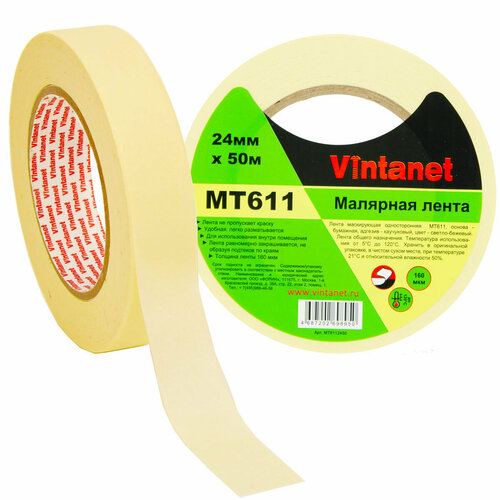 Лента малярная высокотемпературная MT611 Vintanet, до 120°С, 160 мкм, 24мм х 50м