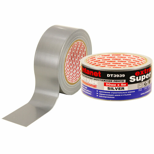 Лента монтажная армированная DT3939 экстра супер Vintanet, серебряная, 50 мм х 5 м
