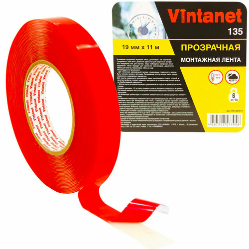 Лента клейкая монтажная двусторонняя VN135 Vintanet, прозрачная, 19 мм х 11 м