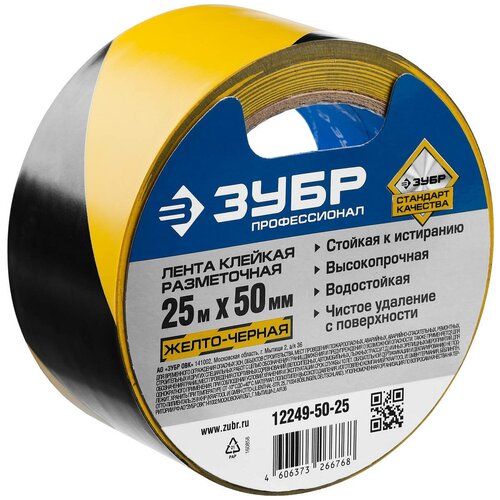 Разметочная клейкая лента ЗУБР Профессионал 50 мм 25 м желто-черная 12249-50-25