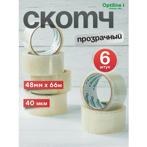 Скотч прозрачный широкий 48 мм, 66 м, 6 рулонов