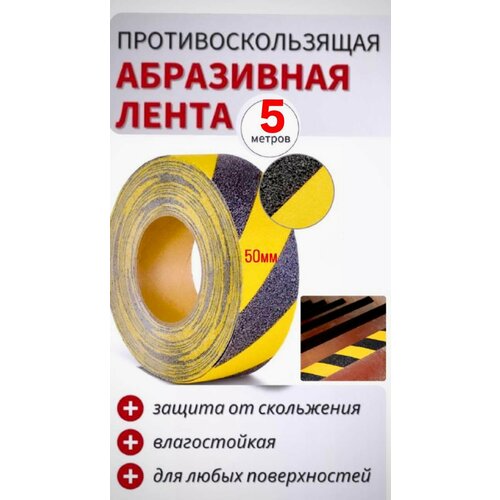 Противоскользящая абразивная желто-черная лента для ступеней размер 50мм х 5м