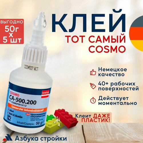 Клей строительный цианакрилатный универсальный секундный Космофен, COSMO CA 12 CA-500.200, супер-клей Cosmofen, 50 гр*5 шт