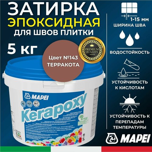 MAPEI Эпоксидная затирка для плитки Kerapoxy 143 Терракота, 5 кг - Двухкомпонентная высокостойкая клей-фуга для плиточных швов от 1 мм/ кислотостойкая/ противогрибковая/ водонепроницаемая