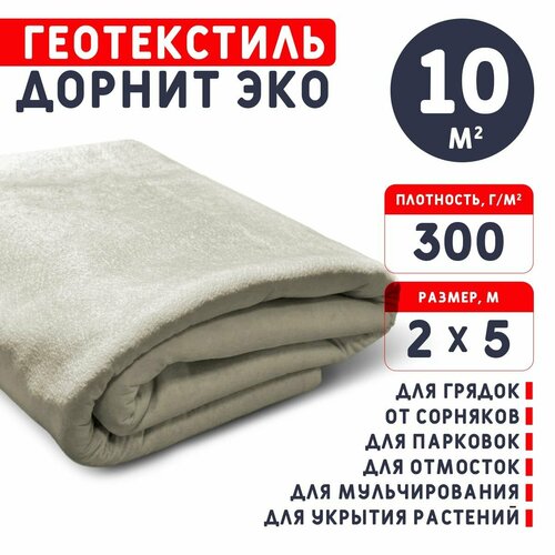 Геотекстиль дорнит 300 ЭКО (2*5м) для дорожек, садовый, фундаментов, дренажа, парковки