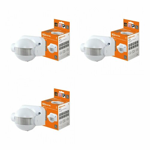 Датчик движения настенный ДДС-02 1100Вт, 5-480с, 12м, 5+Лк, 180гр, IP44, TDM (упаковка 3 шт.)