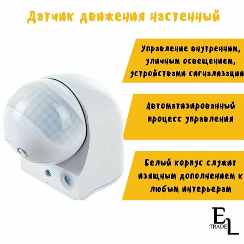 Датчик движения (1100Вт, 5-720с, 10 метров, 5+Лк, угол обзора 180 градусов, IP44, на стену)