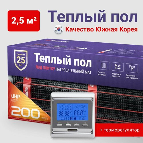 Теплый пол электрический под плитку 2,5 м2 Nunicho 200 Вт/м2 с терморегулятором программируемым серебристым, нагревательный мат