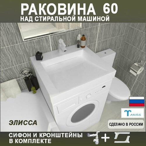 Раковина над стиральной машиной элисса 60 белая с сифоном и кронштейнами