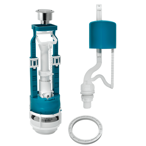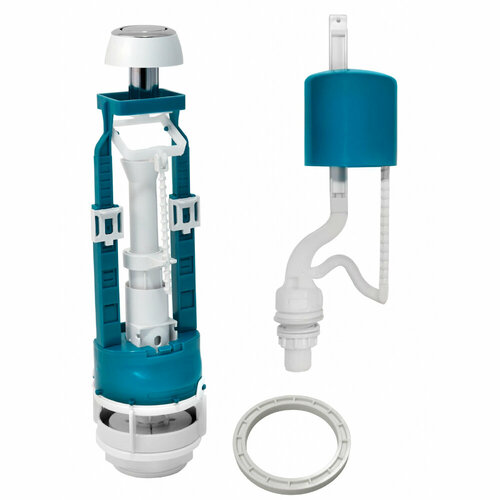 белый, синийКомплект арматуры для бачка к унитазу. Универсальный сливной клапан СБ2м кнопочный с двумя режимами слива. Система «