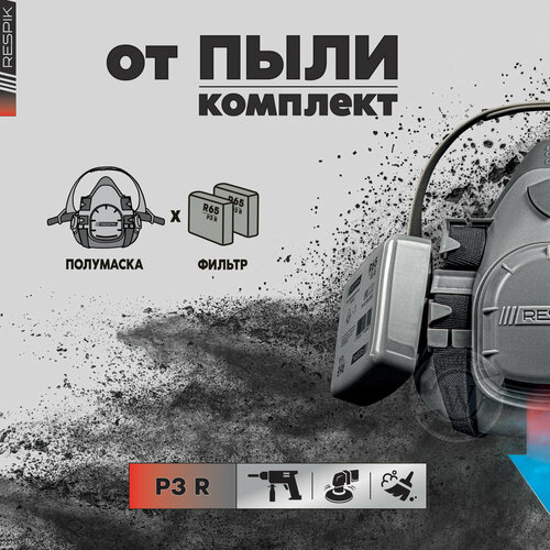 Комплект для защиты от пыли RESPIK® D801 (полумаска / респиратор RESPIK® 801, противоаэрозольные фильтры RESPIK® R65) / малый размер S