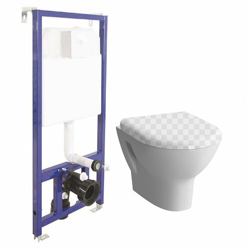 Безободковый подвесной унитаз; Дюропластовое сиденье с микролифтом; Инсталляция; Механическая Двурежимная панель смыва 3/6 л; Набор крепежей инсталляции к стене и полу; Набор крепежей унитаза к инсталляции; Инструкция по установке; Гарантийный талон