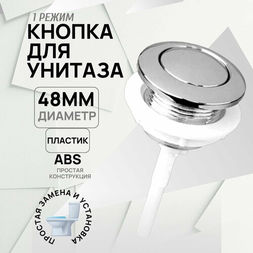 Саморегулирующаяся хромированная кнопка для бачков с отверстиями в крышке от Ø16 до Ø60 мм. Наполнительный клапан с 1/2’’ пластмассовым штуцером;