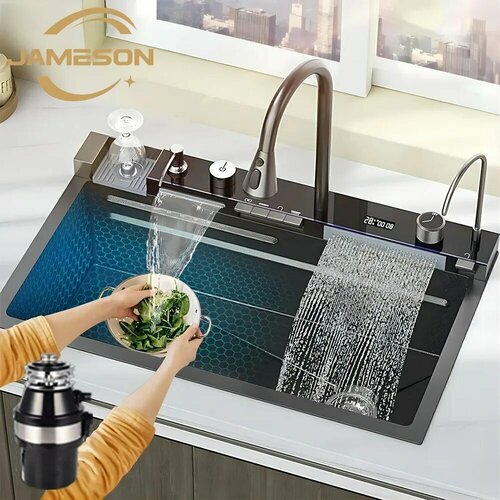 Мойка, нержавеющая сталь, крыло правое, регулировка температуры воды, серый