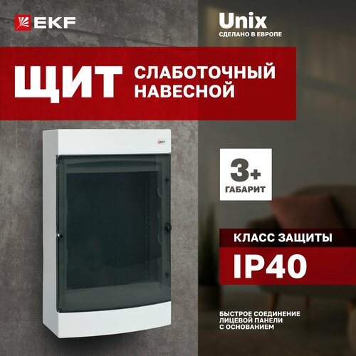 Щит слаботочный навесной Unix прозрачная дверь 3 габарит увеличенный IP40 EKF PROxima