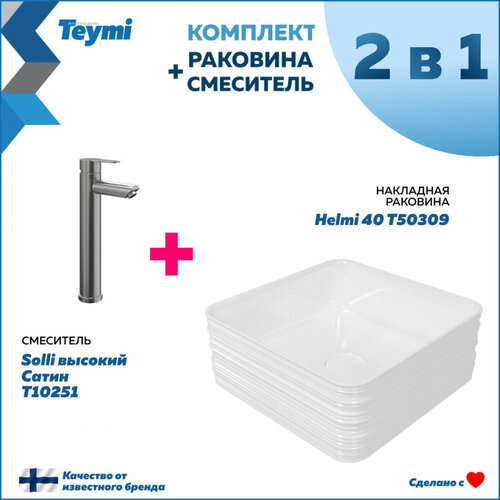 Комплект Teymi: Раковина Helmi 40 + смеситель Solli высокий, сатин F00280