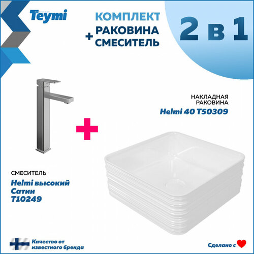 Комплект Teymi: Раковина Helmi 40 + смеситель Helmi высокий, сатин F00240