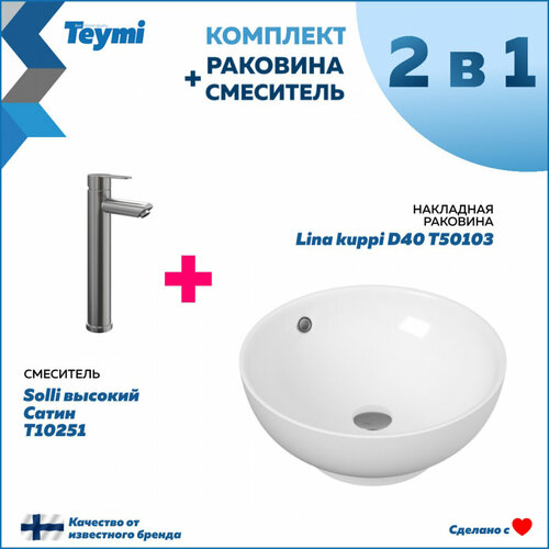 Комплект Teymi: Раковина Lina kuppi D40 + смеситель Solli высокий, сатин F00291