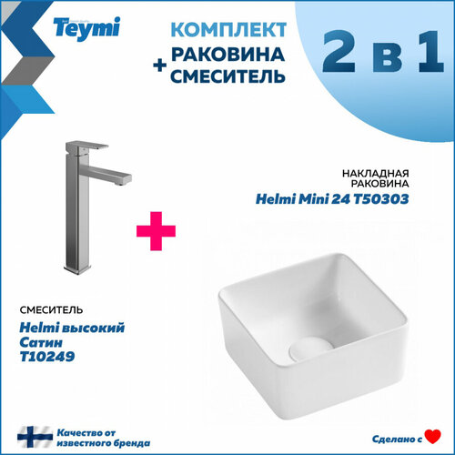 Комплект Teymi: Раковина Helmi Mini 24 + смеситель Helmi высокий, сатин F00239