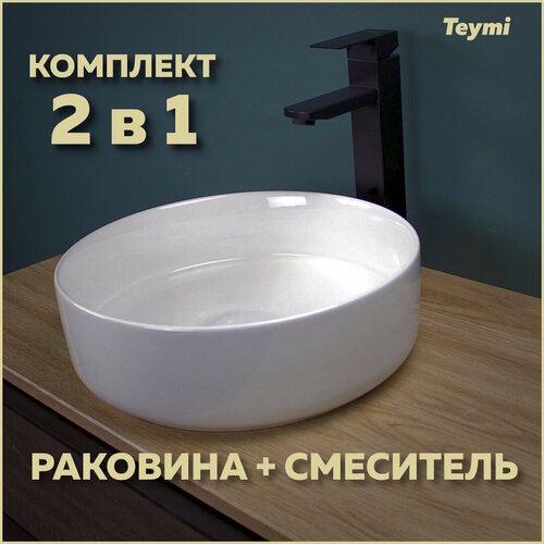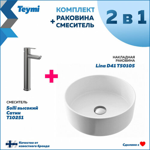 Комплект Teymi: Раковина Lina D41 + смеситель Solli высокий, сатин F00275