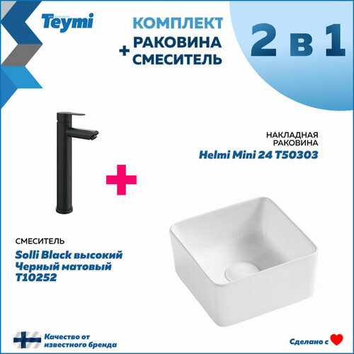 Комплект Teymi: Раковина Helmi Mini 24 + смеситель Solli Black высокий, матовый F00299