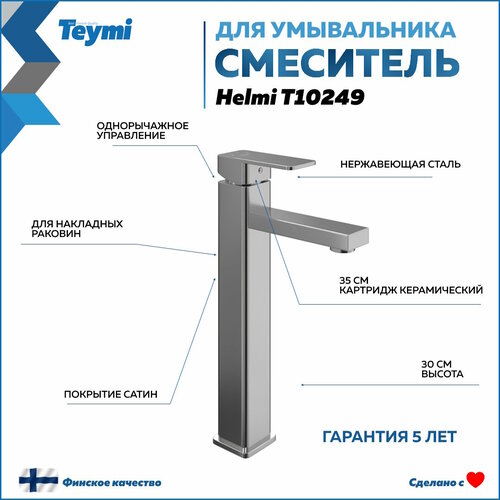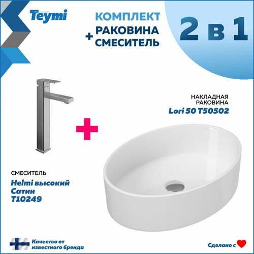 Комплект Teymi: Раковина Lori 50 + смеситель Helmi высокий, сатин F00248