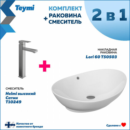Комплект Teymi: Раковина Lori 60 + смеситель Helmi высокий, сатин F00249