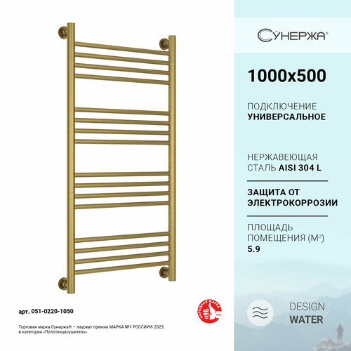 Полотенцесушитель водяной Сунержа Богема+ прямая 1000х500 Состаренная латунь