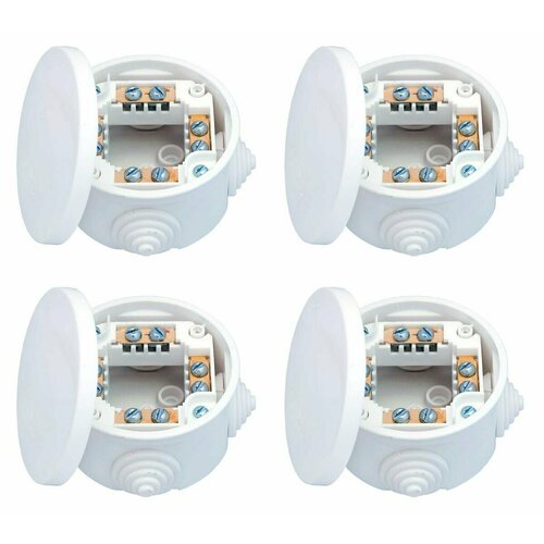 Монтажная коробка с клеммными колодками для открытой проводки IP44 (D74, h 43,5 мм), 4шт