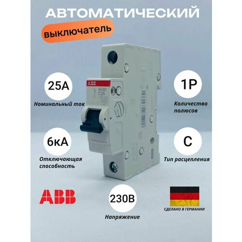 Выключатель автоматический модульный 1п C 25А 6кА SH201 C 25 ABB 2CDS211001R0254 (5шт. в упак.)