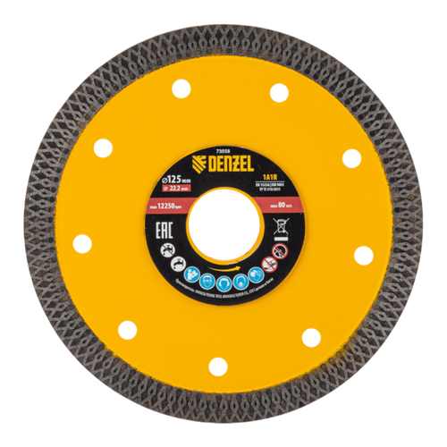 Диск алмазный отрезной DENZEL 125 х 22,2мм, сплошной, супертонкий, горячий пресс, сухой/мокрый рез 73058