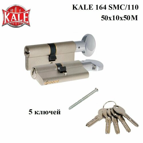 Личинка замка двери (цилиндровый механизм) 110 мм KALE 164 SMC/110 50х10х50M никель ключ/вертушка