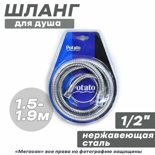 Шланг для душа 150-190см растяжной, Р53-15 имп/имп, хром, Potato