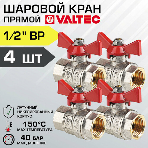 Кран шаровой 3/4" вн-вн (4 шт) VALTEC BASE прямой с рукояткой-бабочкой, арт. VT.217. N.05