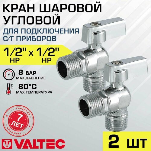 Кран шаровой 1/2" х 3/4" нар. р. (2 шт) VALTEC угловой для сантехники для подключения посудомоечной и стиральной машины, смесителей с гибкой подводкой