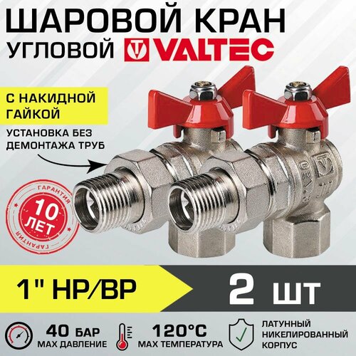Кран шаровой 1" вн-нар (2 шт) VALTEC BASE угловой с полусгоном и ручкой-бабочкой, VT.228. N.06
