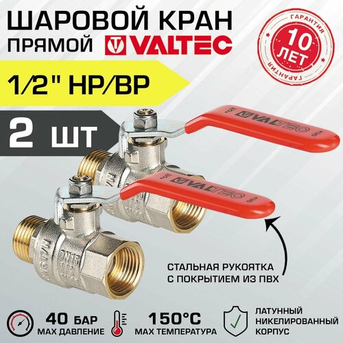 Кран шаровой 1/2" вн-нар (2 шт) VALTEC BASE со стальной рукояткой, полнопроходной, арт. VT.215. N.04