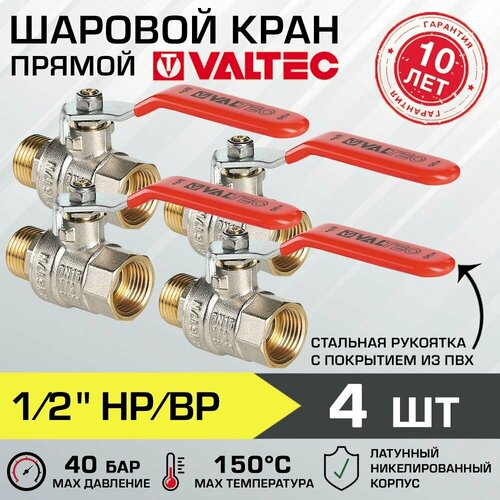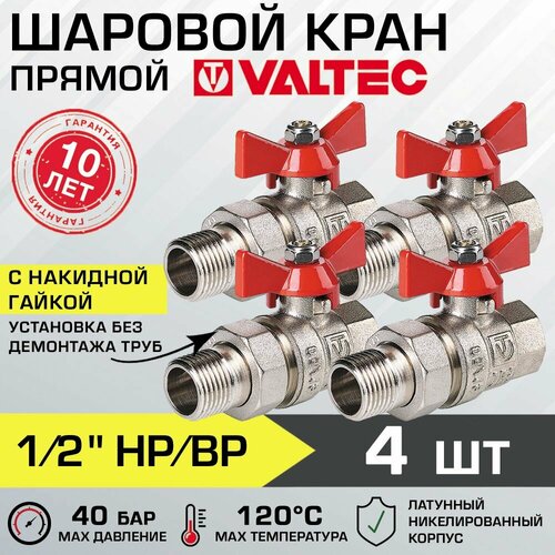 Кран шаровой 1/2" вн-нар (4 шт) VALTEC BASE с полусгоном, прямой, VT.227. N.04