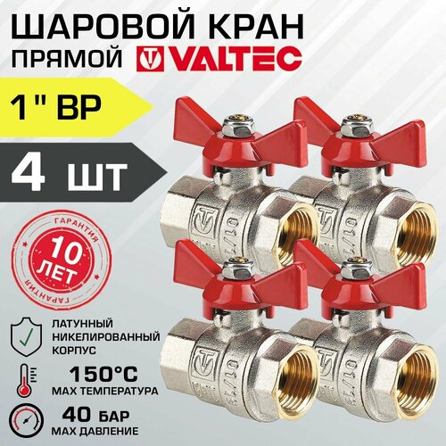 Кран шаровой 1" вн-вн (4 шт) VALTEC BASE прямой с рукояткой-бабочкой, арт. VT.217. N.06