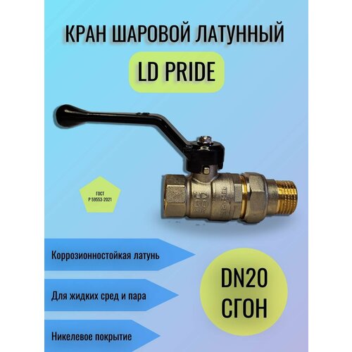 Кран шаровой латунный LD Pride Ду20 (3/4") Ру40 ВН/Американка рычаг 47.20. В-ГШ. Р