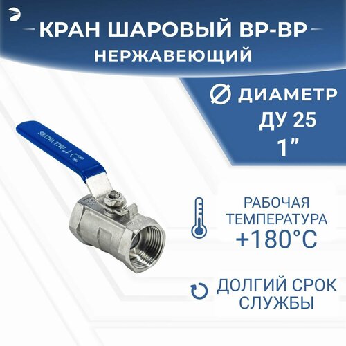 Кран шаровый стальной муфтовый стандартнопроходной нержавеющий (1PC), AISI304 DN25 (1"), (CF8), PN64