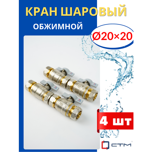Кран шаровый 20 цанговый, ручка-бабочка (СТМ) 4шт.