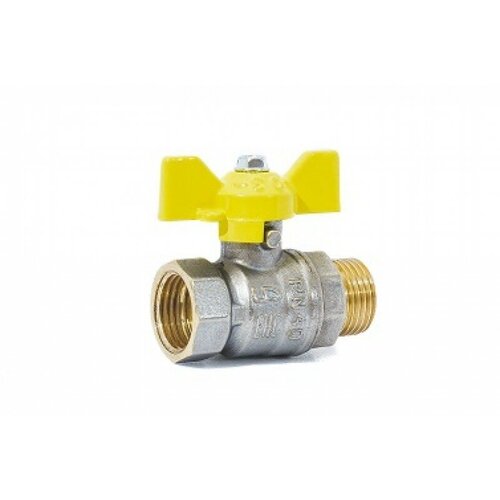 Кран шаровый 1.1/4" ВН LD Pride бабочка желтая, внутренняя/наружная резьба 47.32. В-Н. Б GAS