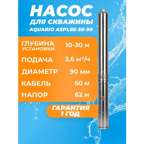 Aquario Насос скважинный Aquario ASP1.8E-50-90 встр. конд, каб.50м Q - 60 л/мин H - 62м Акварио