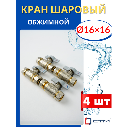 Кран шаровый 16 цанговый, ручка-бабочка (СТМ) 4шт.